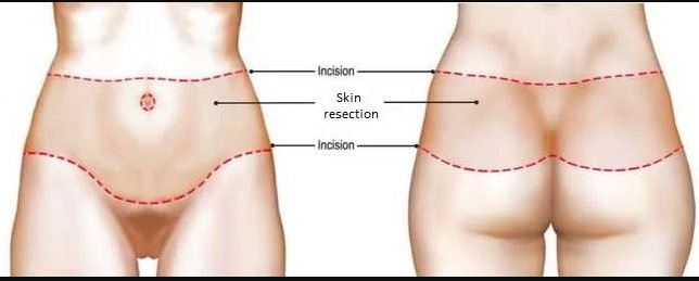 Abdominal area – locally or extending around the sides and into the lower back area Buttocks, Thigh – the inner, outer or posterior thigh, or the thigh’s circumference
