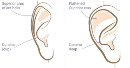 Correction of protruding ears uses surgical techniques to create or increase the antihelical fold (just inside the rim of the ear) and to reduce enlarged conchal cartilage (the largest and deepest concavity of the external ear). Incisions for otoplasty are generally made on the back surface of the ear. When incisions are necessary on the front of the ear, they are made within its folds to hide them. Internal, no removable sutures are used to create and secure the newly shaped cartilage in place, and reduction the earlobe volume by external incision