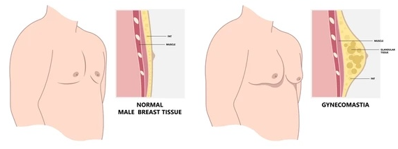 Gynecomastia is a condition of overdeveloped or enlarged breasts in men that can occur at any age. The condition can be the result of hormonal changes, heredity, obesity or the use of certain drugs.