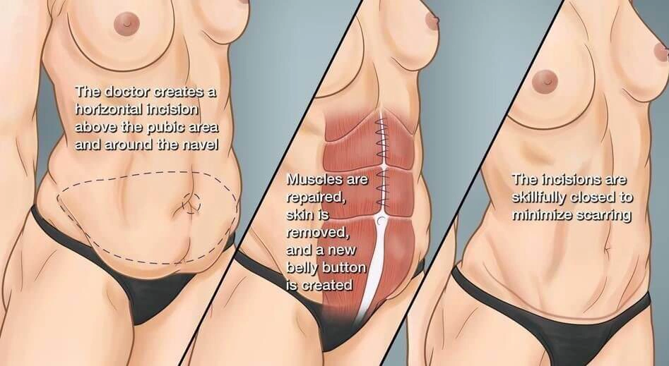 After a tummy tuck, your abdominal incision and bellybutton will likely be covered with surgical dressing. Small tubes might be placed along the incision site to drain any excess blood or fluid.